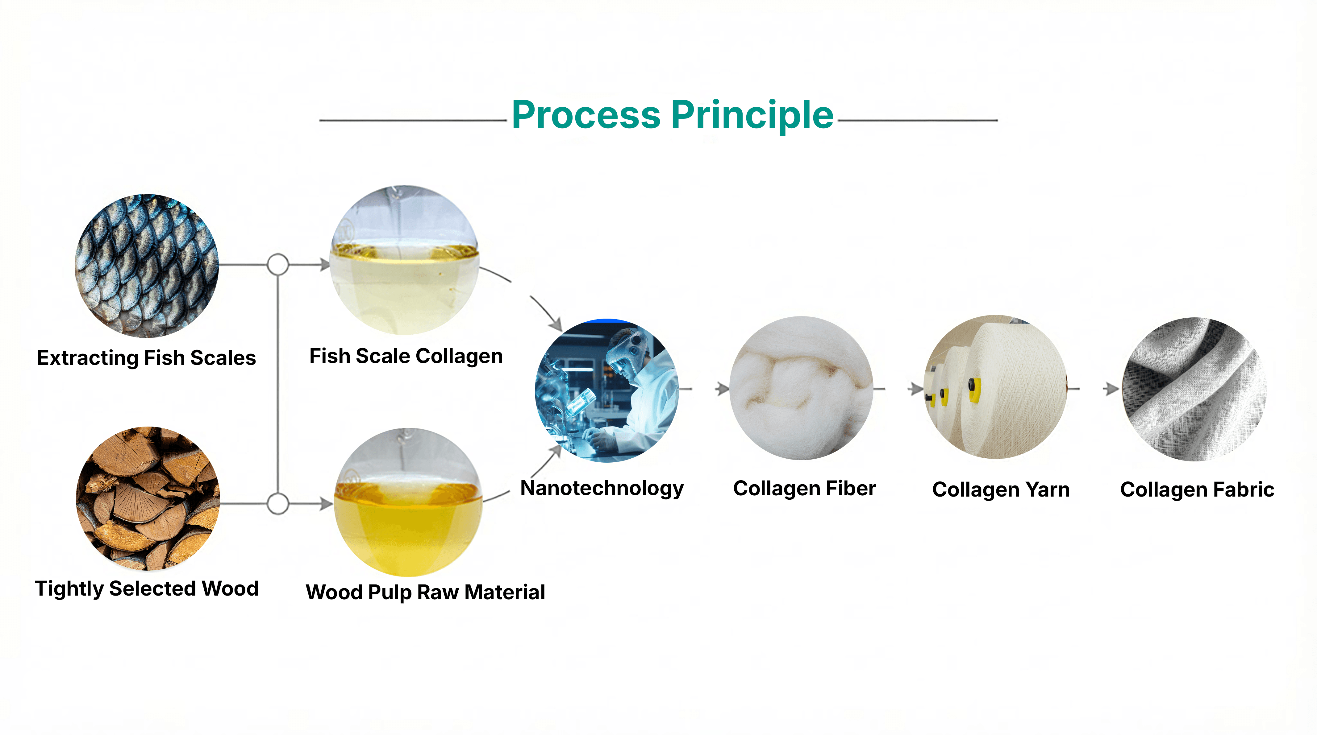 FILAGEN fibers are nanotechnology made of cellulose from wood pulp combined with fish-scale collagen peptides which are environmentally friendly material. The fibers are excellent for health and beauty lovers, it can be blended all kinds of textile products.